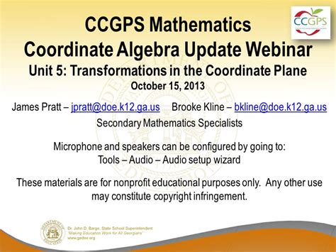 Read ccgps coordinate algebra unit 5 transformations Kindle Editon online is a convenient and frugal way to read ccgps coordinate algebra unit 5 transformations you love right from the comfort of your own home. Yes, there sites where you can get Kindle Editon "for free" but the ones listed below are clean from viruses and completely legal to use.